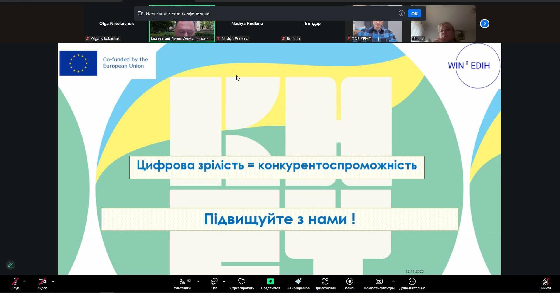 Проведений воркшоп «Цифрова досконалість: інструменти оцінки цифрової зрілості організацій публічного сектору, малих та середніх підприємств», який модерував професор Денис Ільницький, координатор проєкту «Європейський цифровий інноваційний хаб WIN-WIN EDIH».