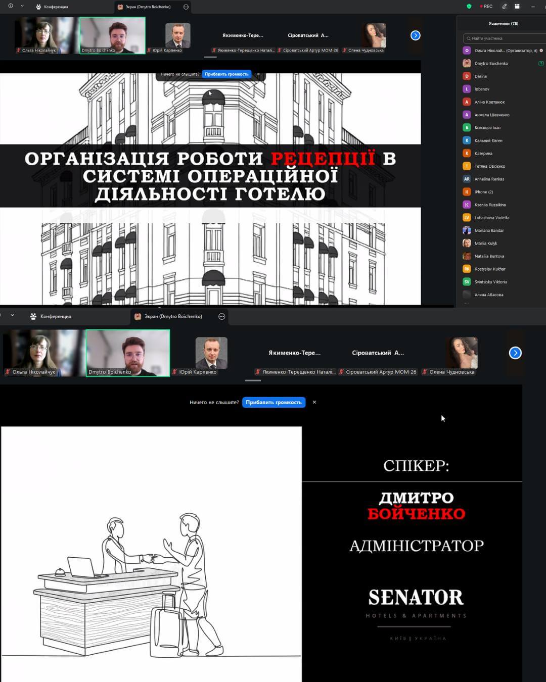 14 квітня 2026 року кафедрою технологій у ресторанному господарстві, готельно-ресторанної справи та туризму ННІЕТ імені Михайла Туган-Барановського Криворізького національного університету відбувся практичний вебінар на тему: «Організація роботи рецепції в системі операційної діяльності готелю».