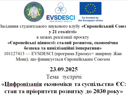 donnuet donnuet2025-12-01 11:29:482025-12-05 11:31:42ДАЙДЖЕСТ ЗАХОДІВ: Європейські цінності: сталий розвиток, економічна безпека та цивілізаційні імперативиErasmus + Jean Monnet